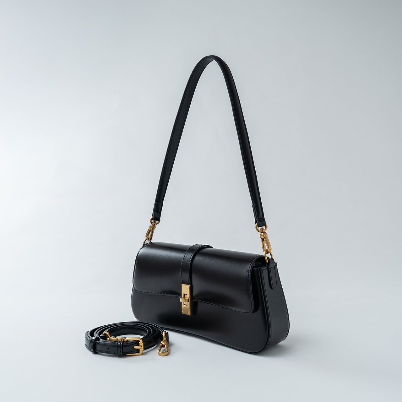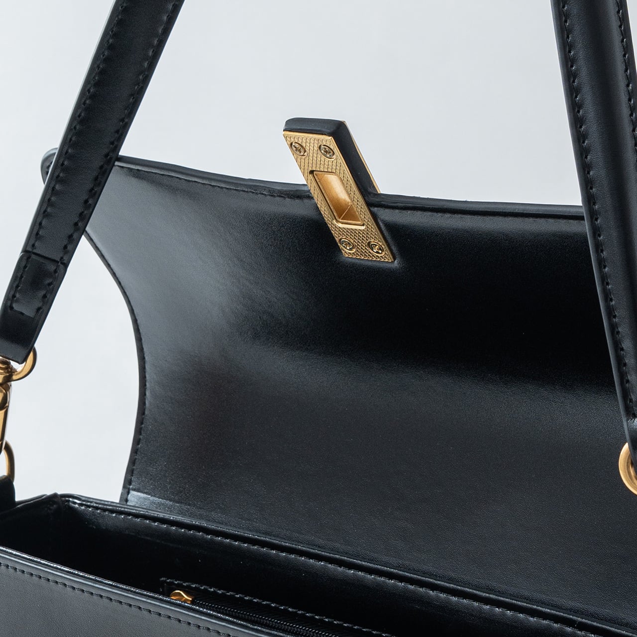 上品な艶感と洗練されたフォルムが魅力のショルダーバッグ。