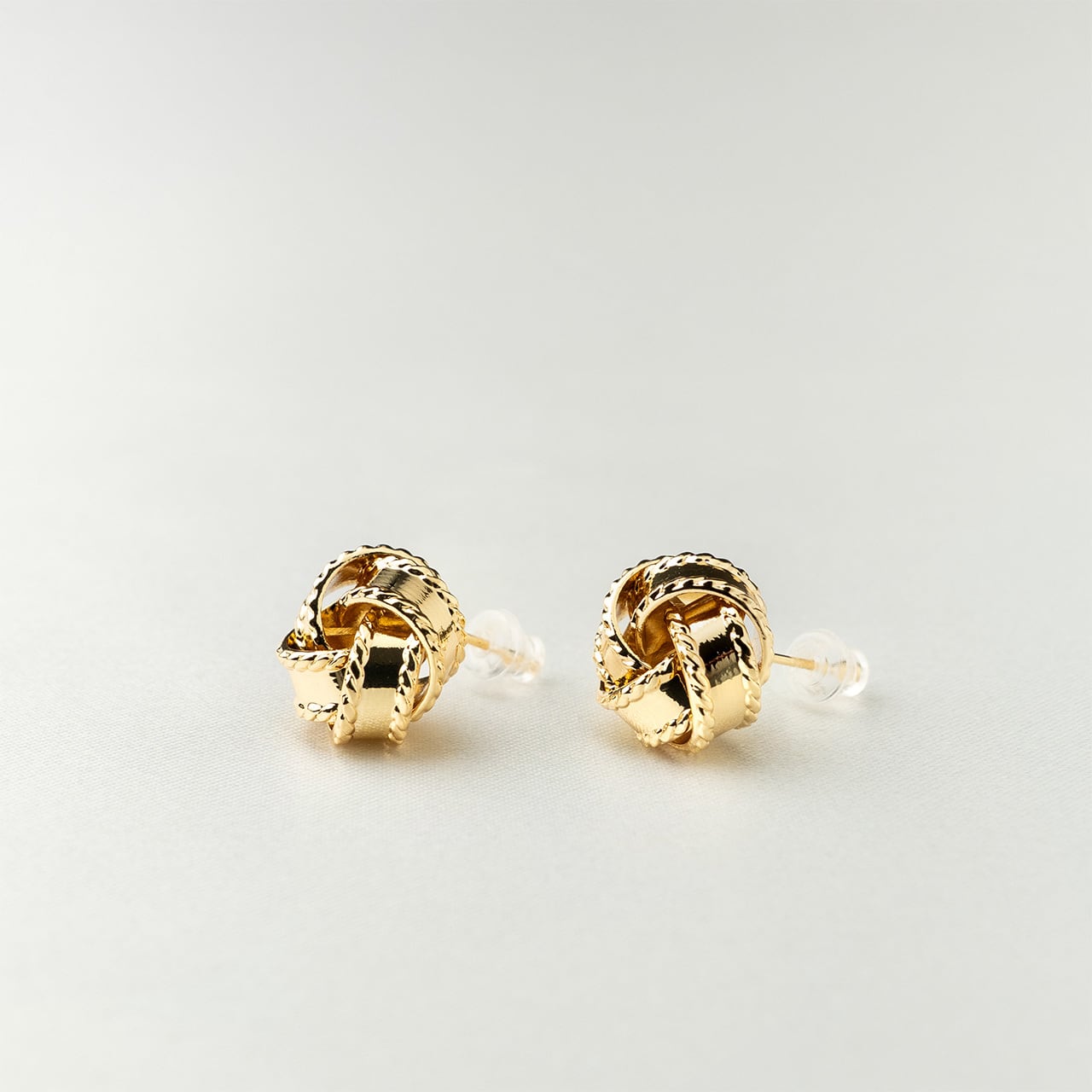 さりげなく耳元に存在感を。繊細に編み込まれたようなノットデザインが上品で洗練された印象を与えるピアスです。フォーマルにもカジュアルにも馴染む万能アクセサリー。