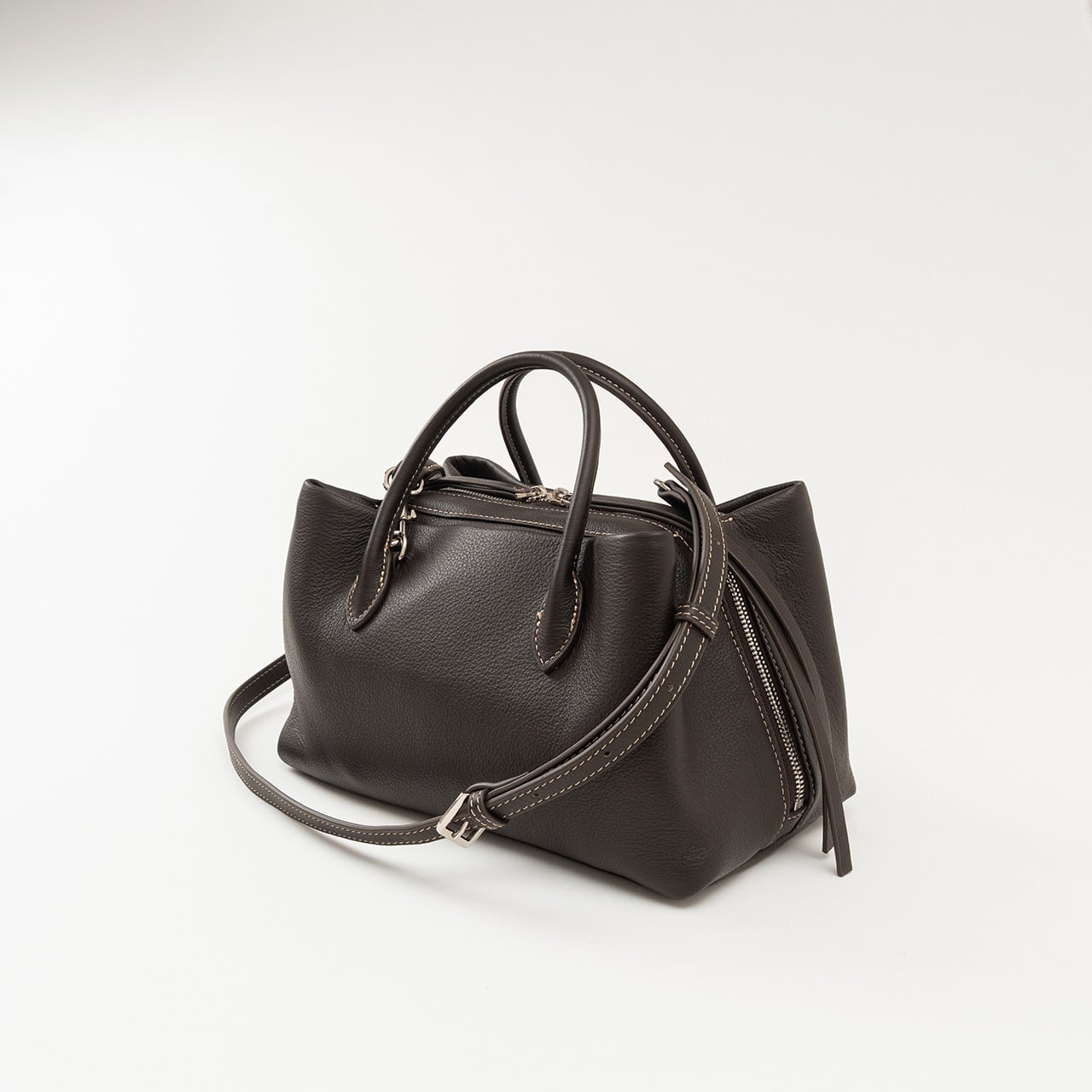上品な印象のシンプルデザインと、使い勝手のよさを両立した大人のレザーバッグ。