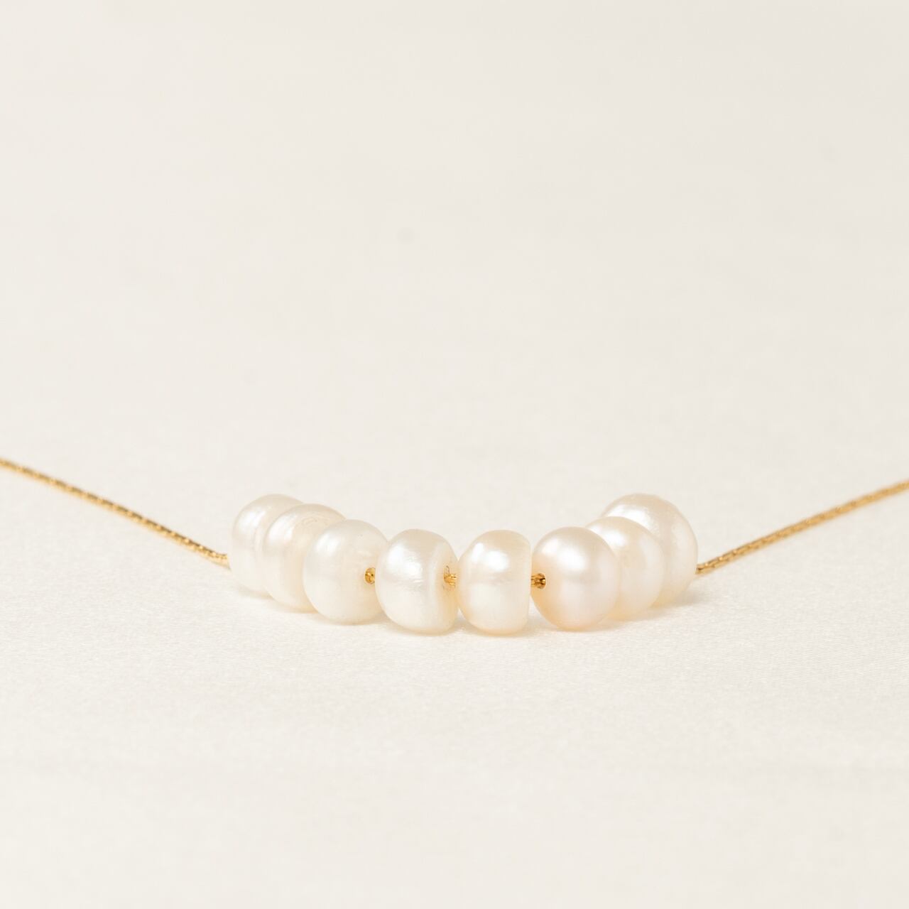 不揃いなフォルムが魅力のバロックパールをライン状にあしらった上品なネックレス。個性と気品を兼ね備えたデザインで、日常使いから特別な日まで幅広く活躍します。