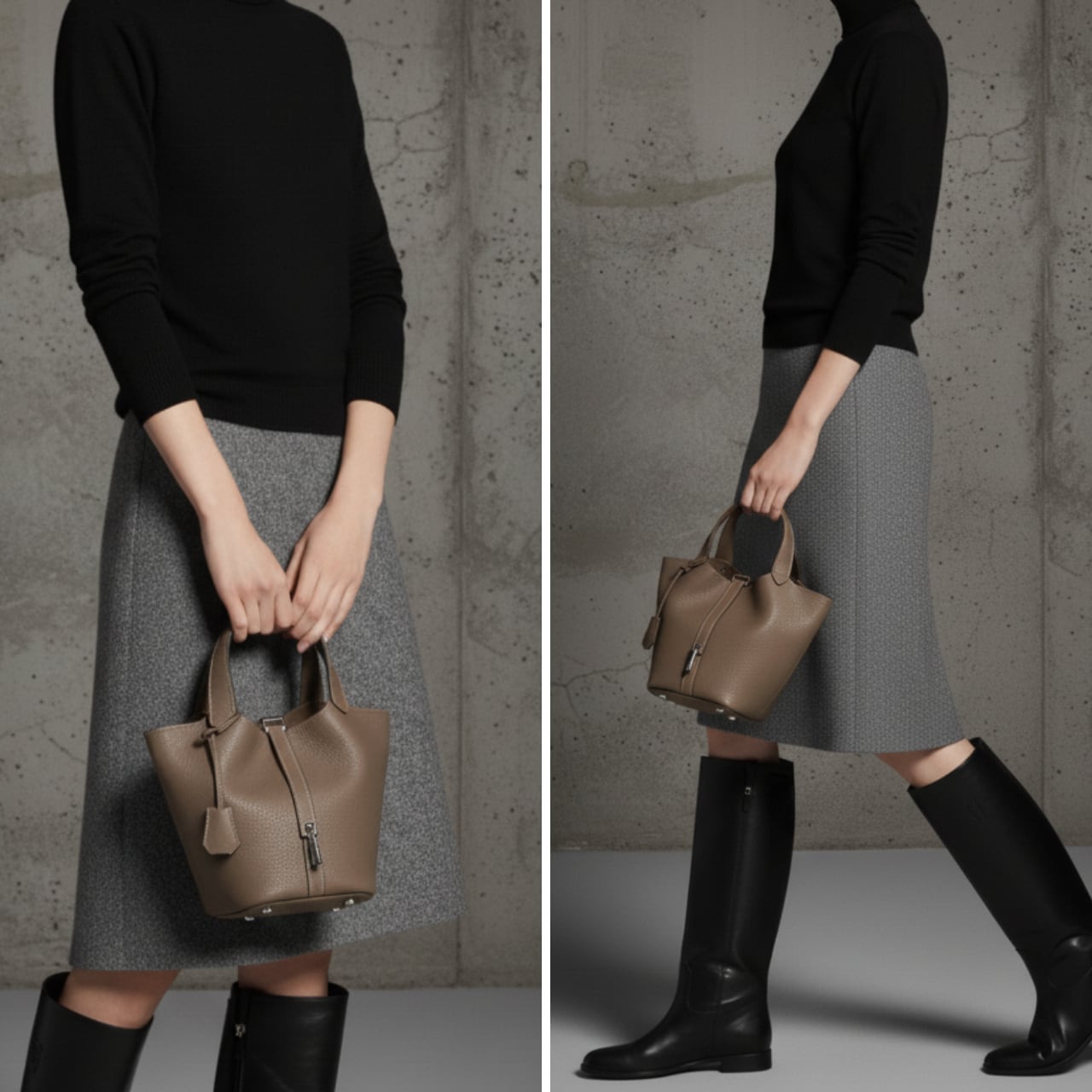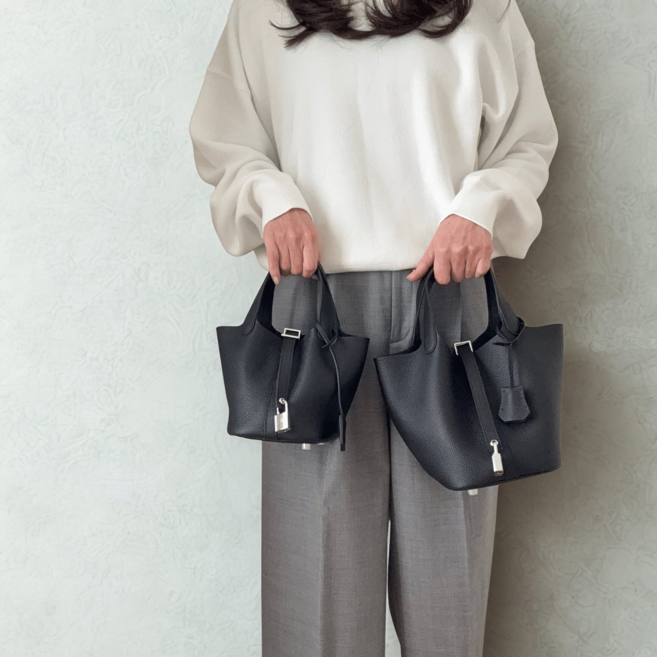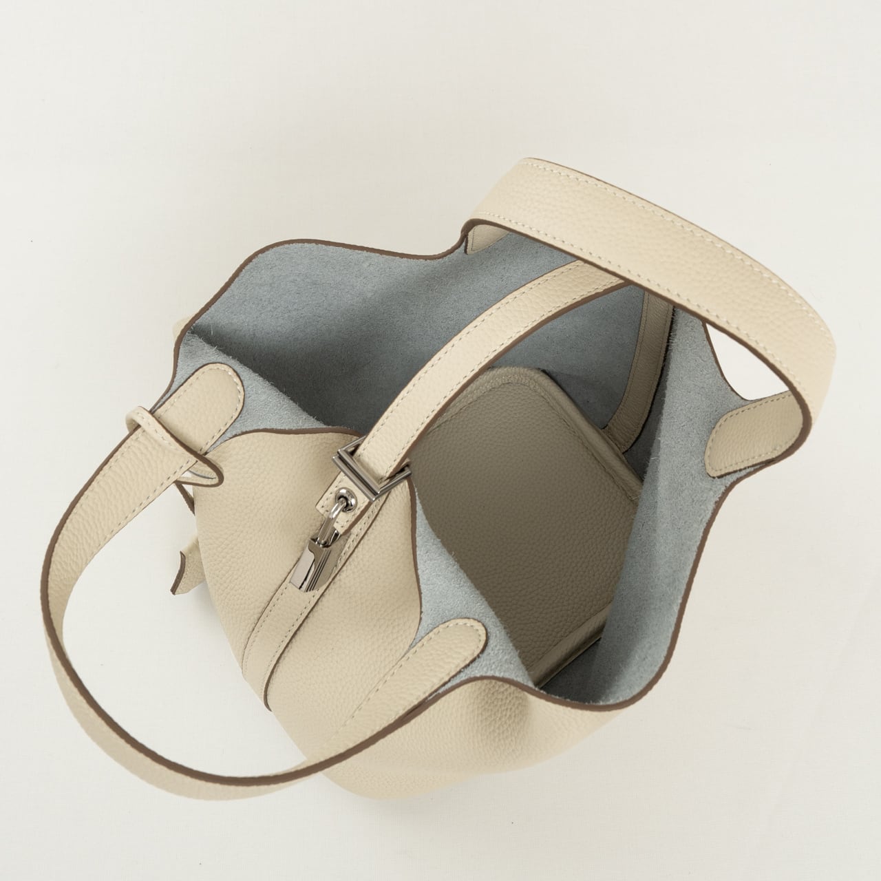 ころんとしたシルエットが魅力の、コンパクトで上品なバケットバッグ。