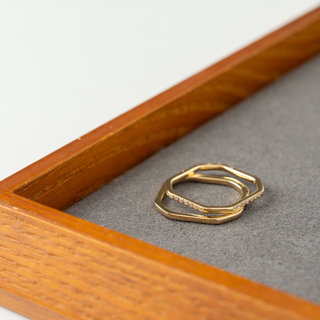 シャープな八角形フォルムと繊細なストーンの輝きが指先を華やかに演出します。