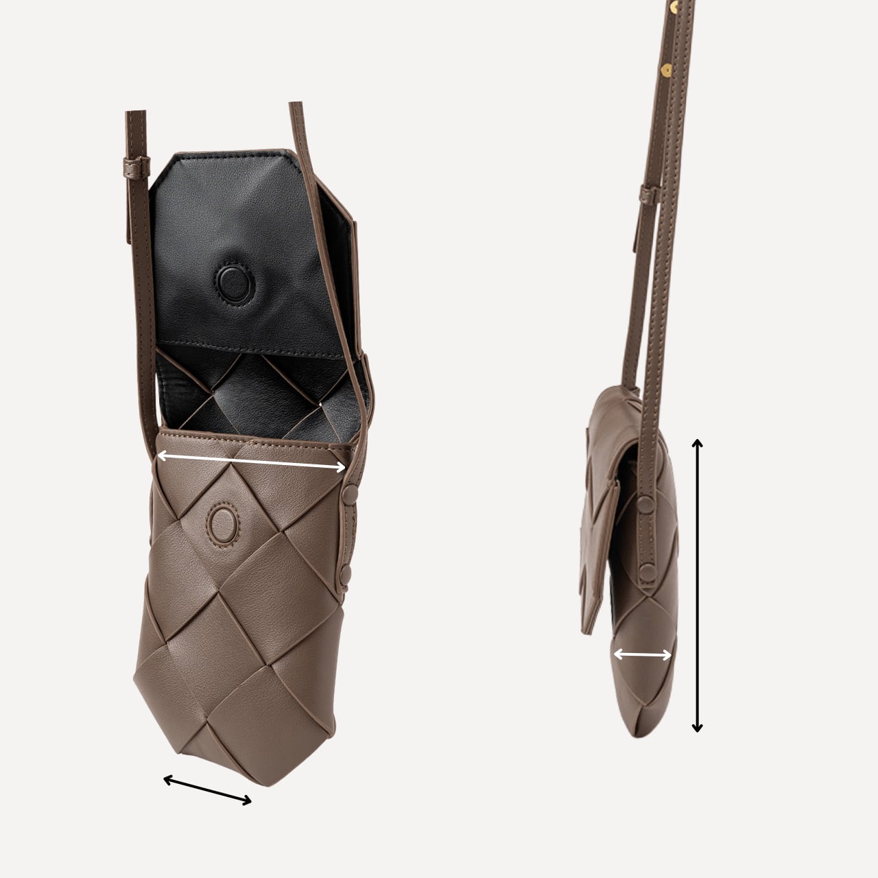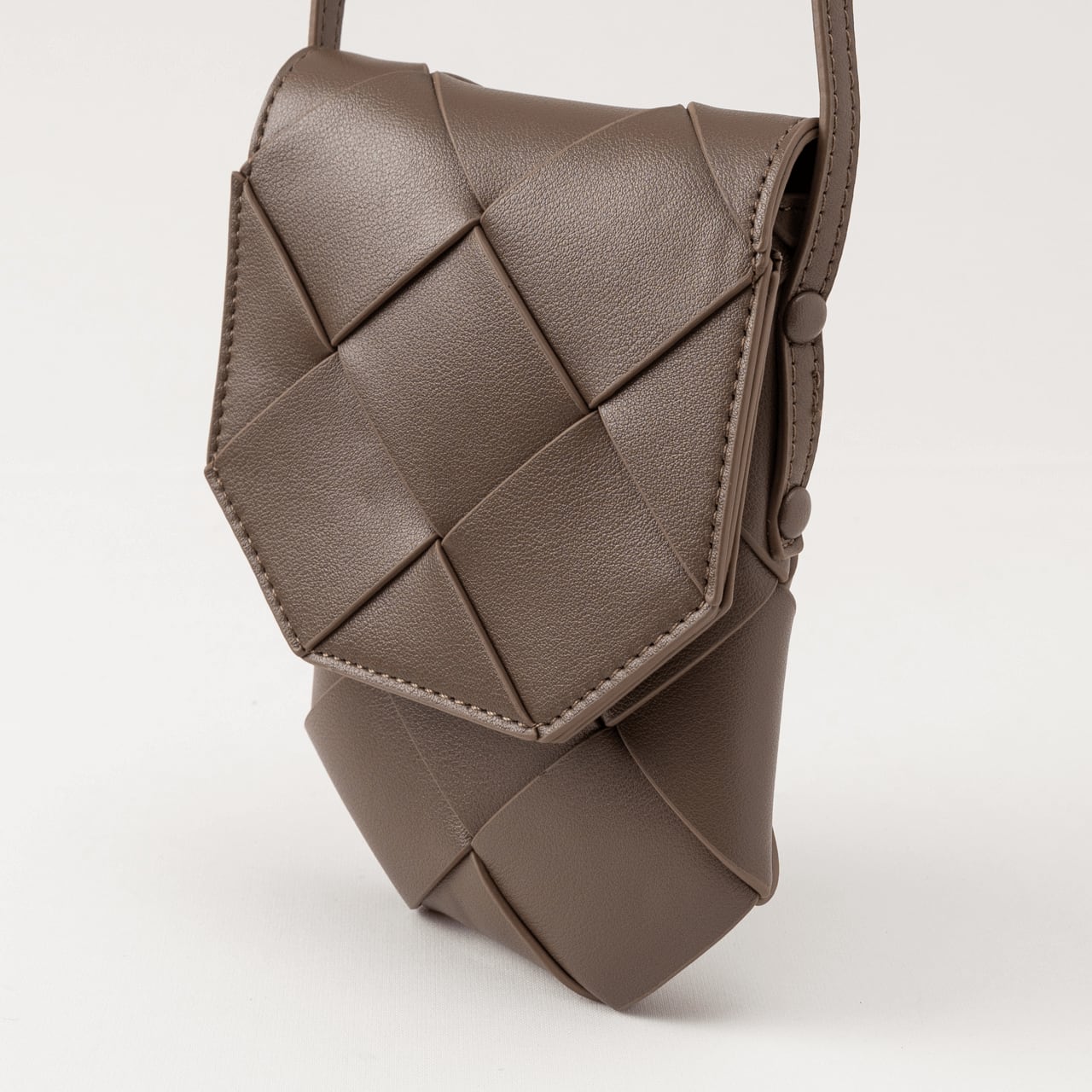シンプルな編み込みデザインと上質な本革素材が魅力のコンパクトバッグ。